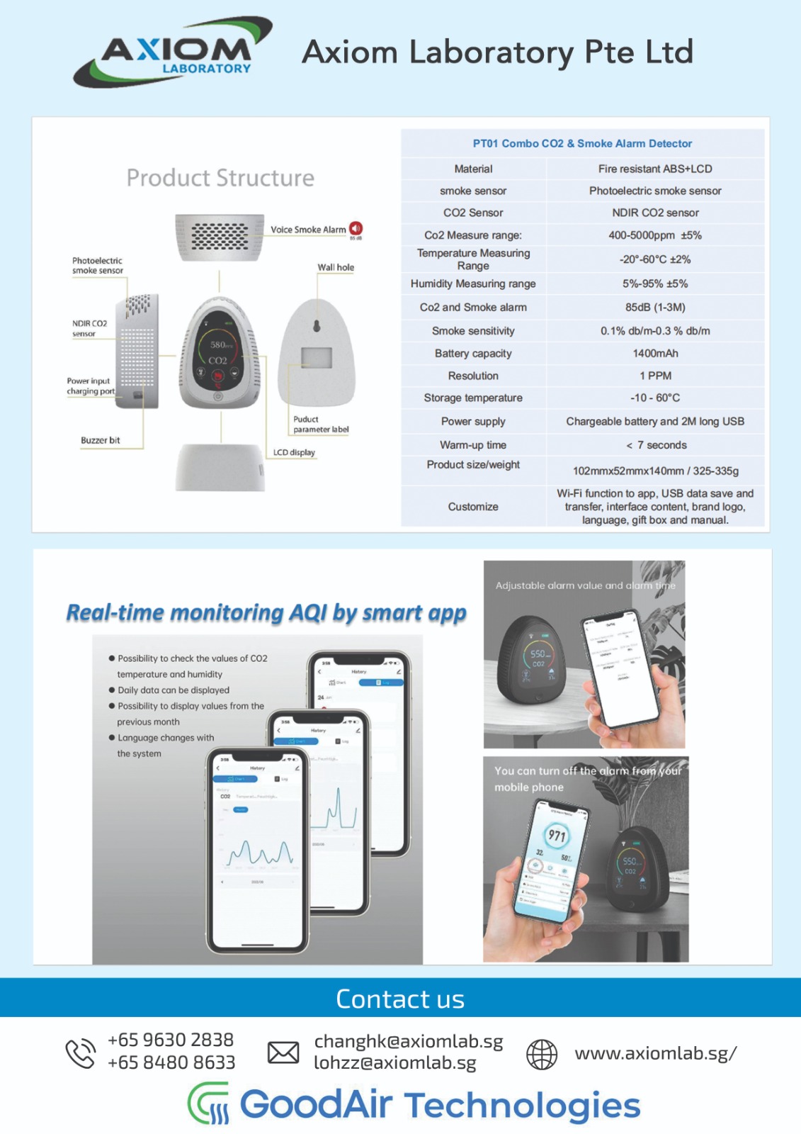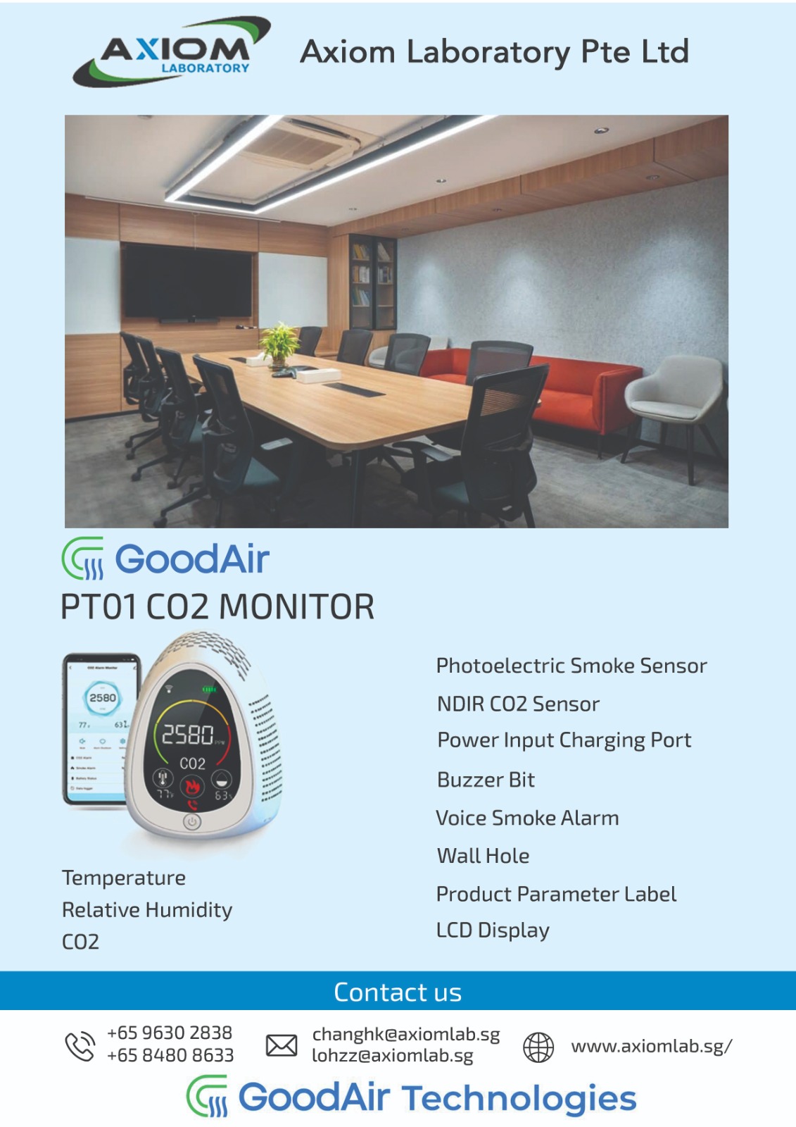In residential settings, the PT01 offers reliable monitoring of air quality, enabling families to maintain a safe atmosphere by detecting harmful smoke or elevated CO2 concentrations.